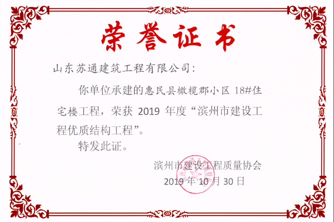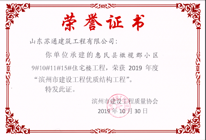 山東蘇通建筑工程有限公司,創(chuàng)建于2009年8月。目前擁有房屋建筑工程施工總承包壹級、市政公用工程施工總承包叁級、水利水電工程施工總承包叁級資質(zhì),同時還具有建筑裝修裝飾工程專業(yè)承包貳級、消防設(shè)施工程專業(yè)承包貳級、鋼結(jié)構(gòu)工程專業(yè)承包叁級、建筑機電安裝工程專業(yè)承包叁級等專業(yè)承包資質(zhì)。 公司總部坐落于山東省濱州市濱城區(qū)黃河十二路877號,現(xiàn)有辦公面積約2000平方米,機構(gòu)設(shè)黨支部工會辦公室、總經(jīng)理辦公室、綜合辦公室、工程管理部、經(jīng)營預(yù)算部、資產(chǎn)財務(wù)部、材料設(shè)備部、運行管理部、法律事務(wù)部等多個職能部門。公司管理體系已經(jīng)通過了GB/T 19001及GB/T 50430質(zhì)量管理體系、GB/T 24001環(huán)境管理體系(EMS)、GB/T 28001職業(yè)健康安全管理體系(OHSMS)等體系的認證。 公司承建完工了濱州市建大教師之家、建大清怡苑、香格里拉水岸綠城住宅小區(qū)、雙泰建大城、曲阜崇德公館住宅小區(qū)、北海新區(qū)御景藍灣住宅小區(qū)、沾化德榮國際華城住宅小區(qū)、惠民橄欖郡住宅小區(qū)等工程項目,目前在建工程項目有:濱州市頤高國際電子商務(wù)產(chǎn)業(yè)園住宅小區(qū)項目、濱州市東盛國際項目、高新區(qū)建大中央華府住宅小區(qū)項目、濱州市融匯新里程住宅小區(qū)項目、濱州市建大秦皇壹號住宅小區(qū)項目、濱州市森林花...
